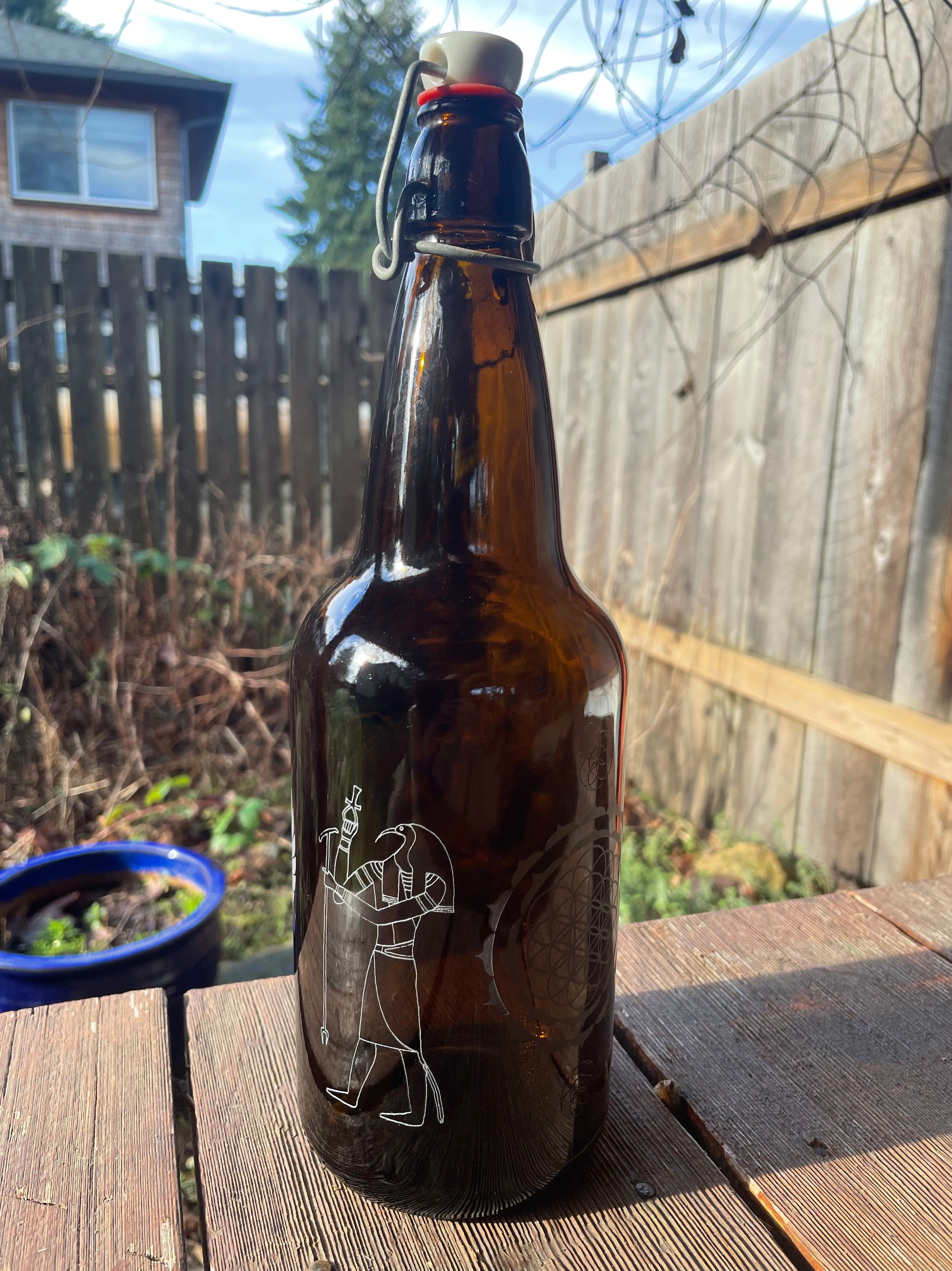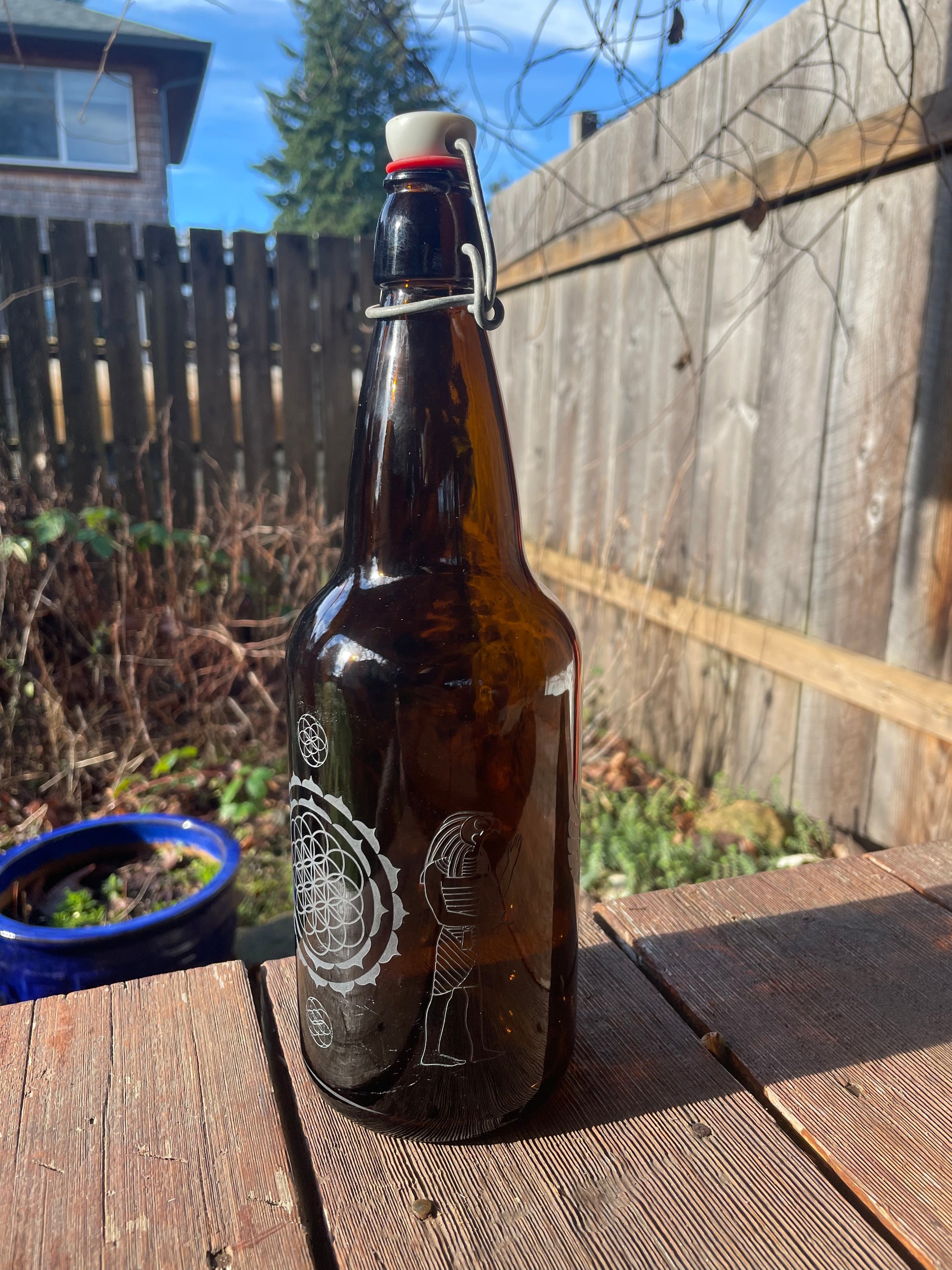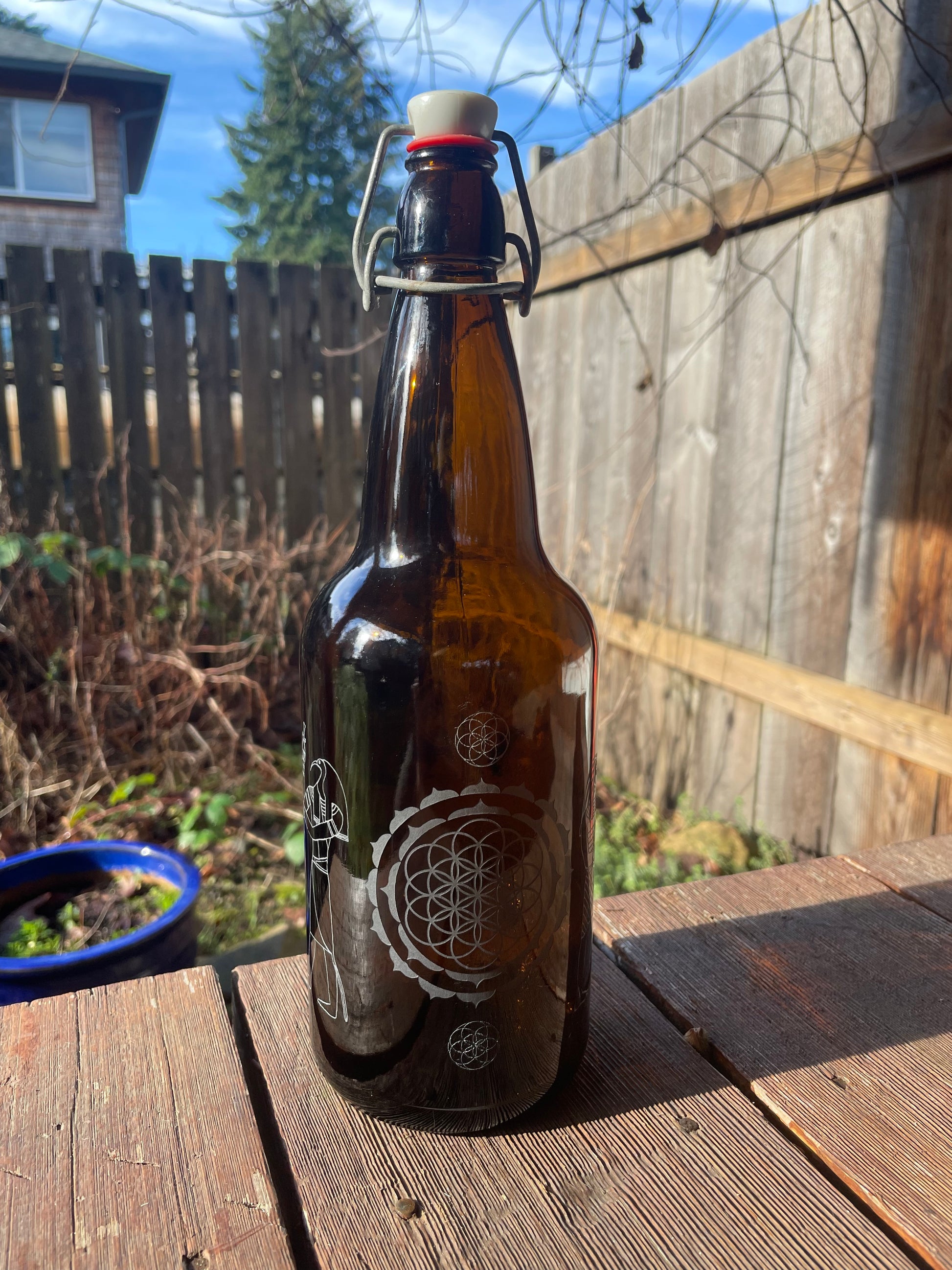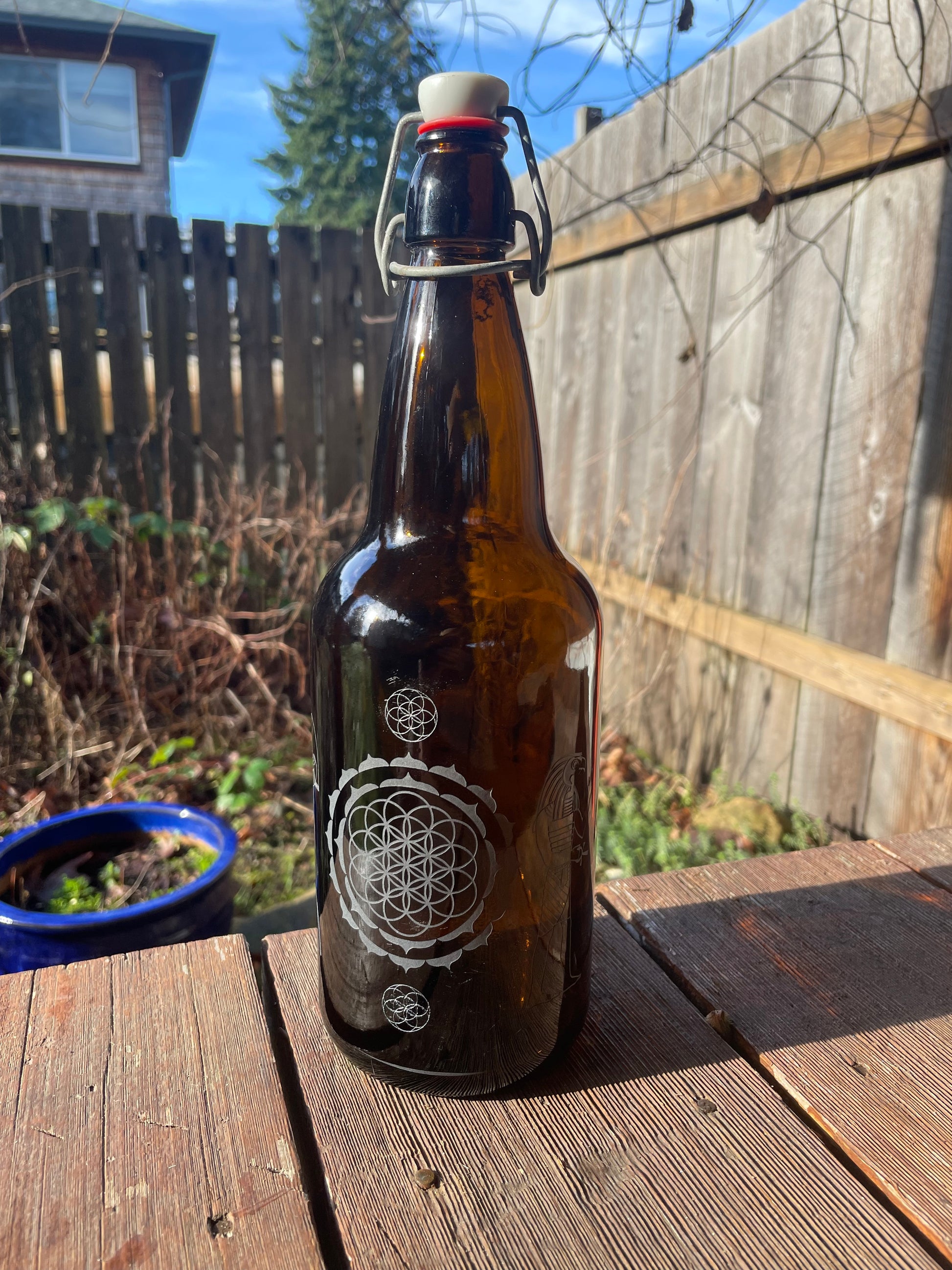 1000ml Egyption Flower of Life Etched Amber Glass Water Bottle