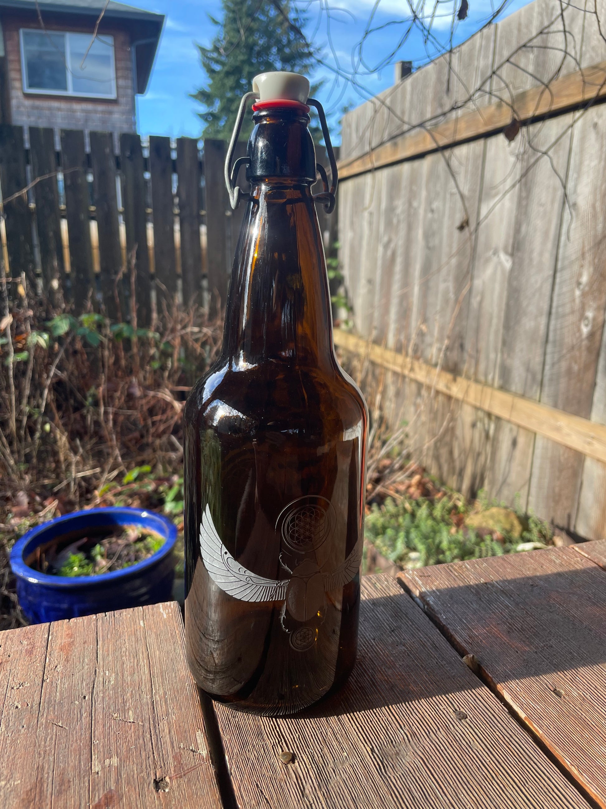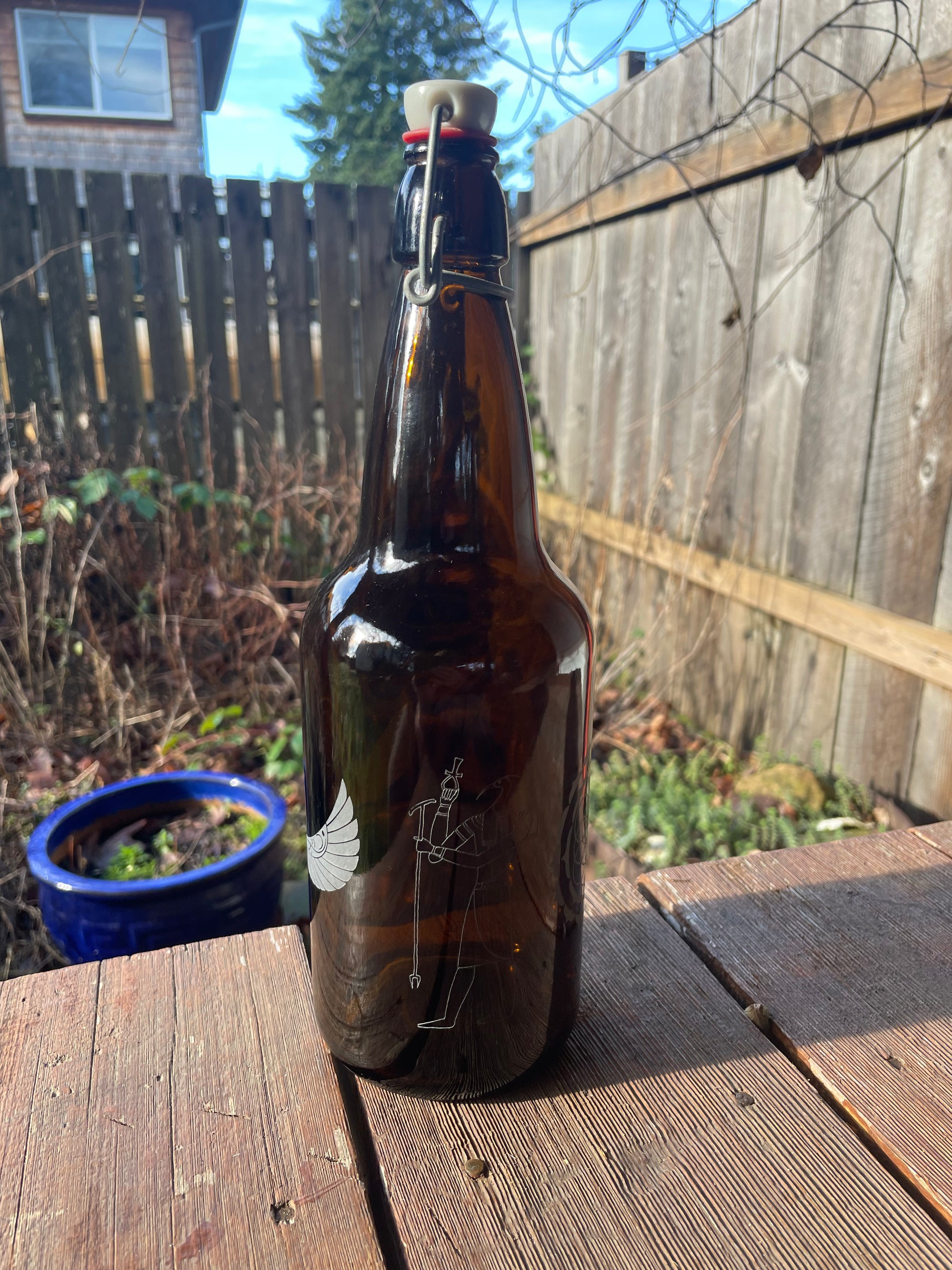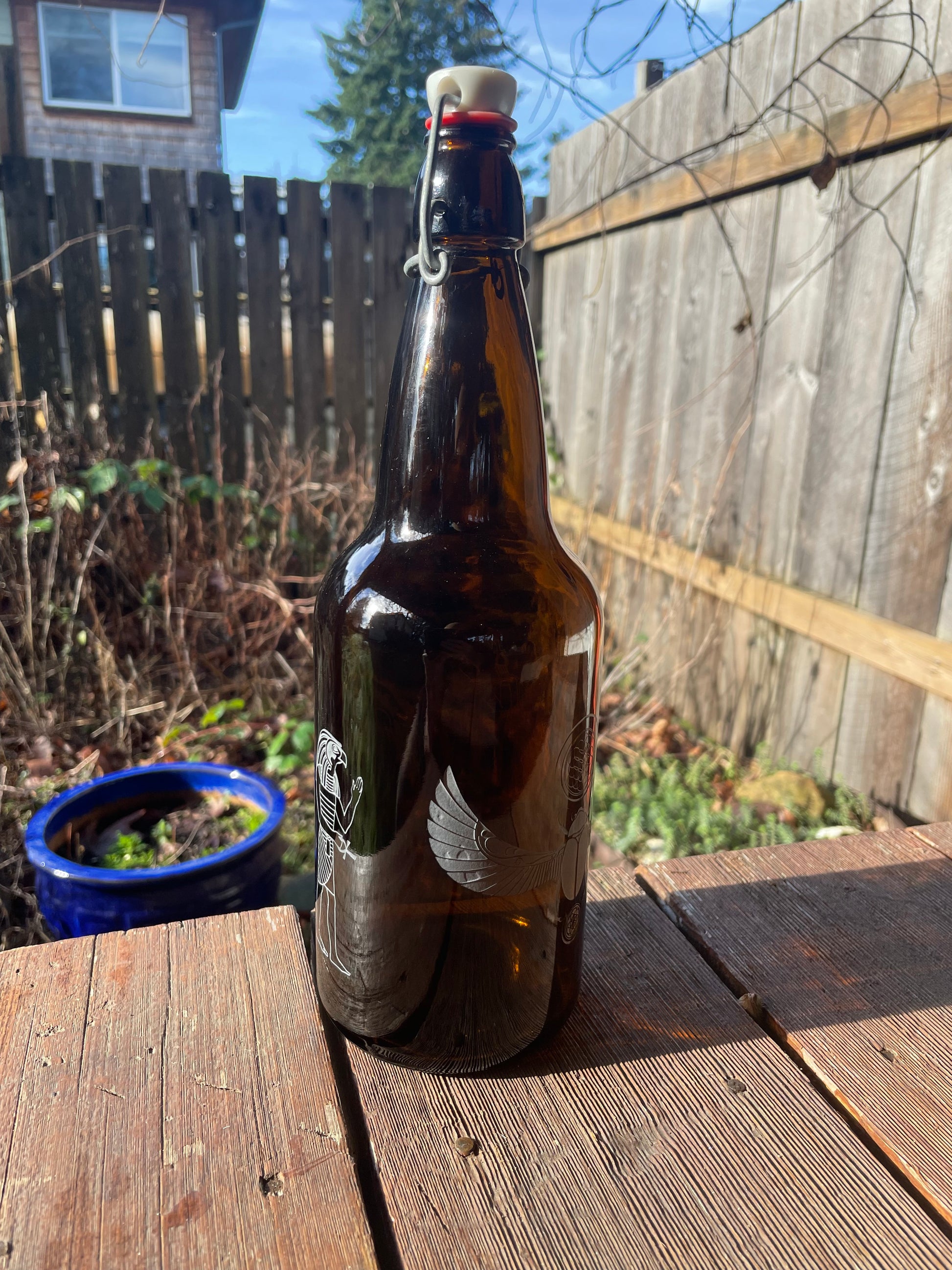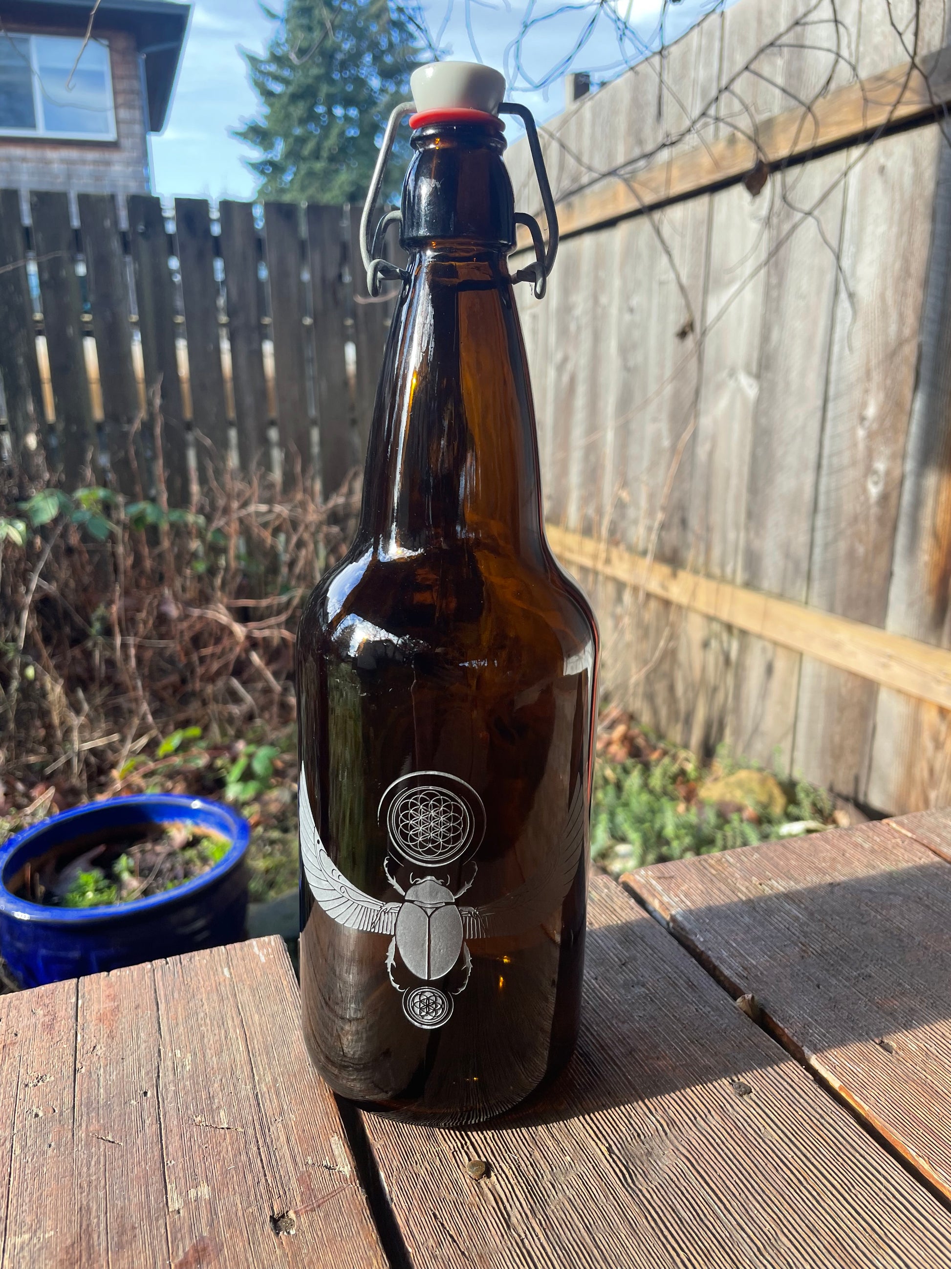 1000ml Egyption Flower of Life Etched Amber Glass Water Bottle