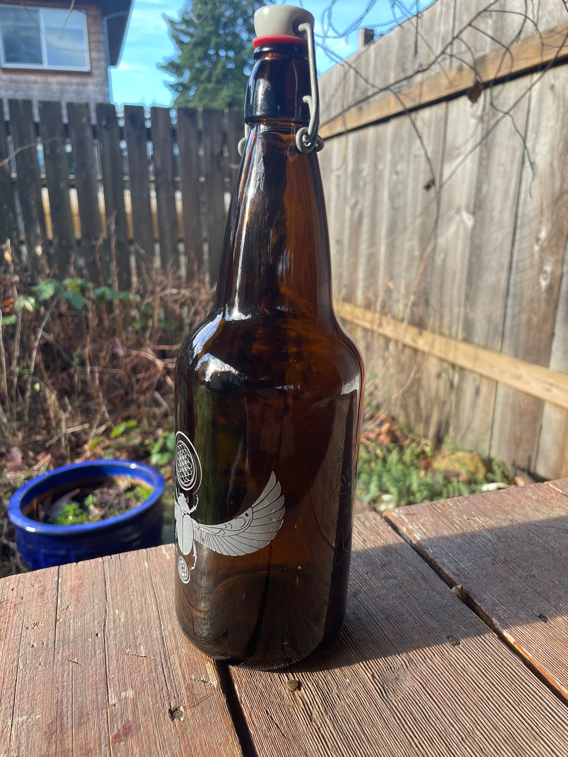 Infuse your daily routine with ancient Egyptian wisdom, creation's blueprint, and divine guardianship through this majestic 1000ml amber glass water bottle, featuring a secure swing top lid for effortless, reliable sealing and portability.