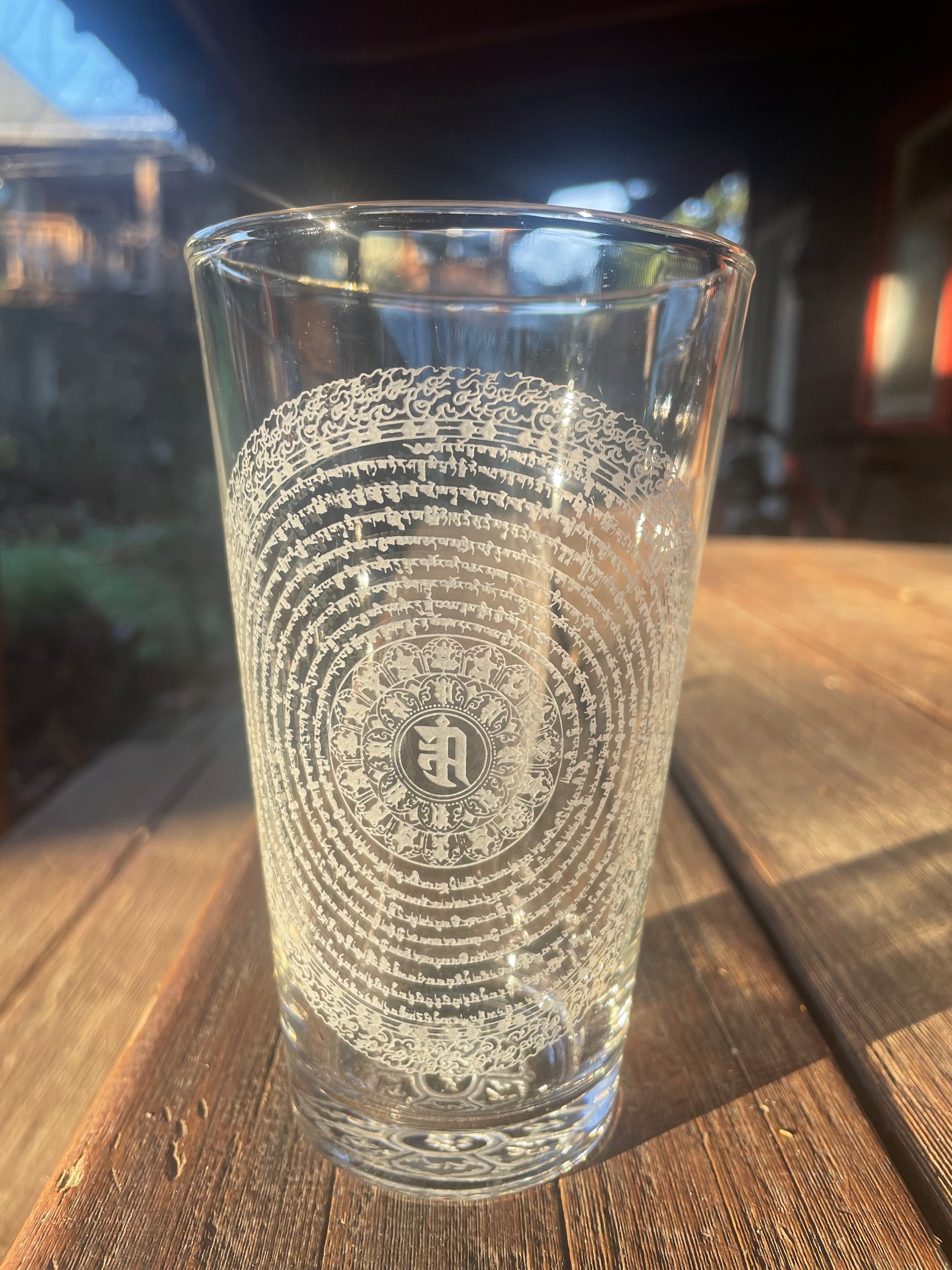 Namgyalma Mantra 480ml Etched Pint Glass | Sacred Geometry Drinkware