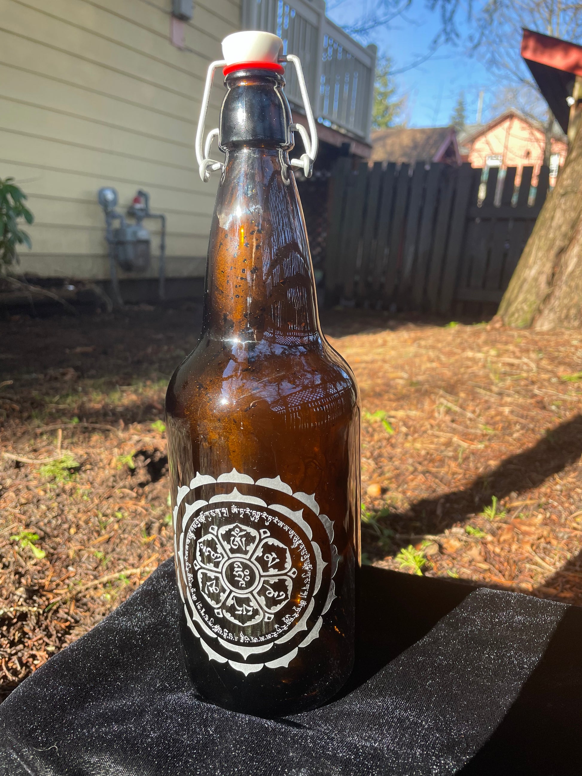 Om Mani Padme Hum / Ganesh 1000ml Amber Glass Water Bottle