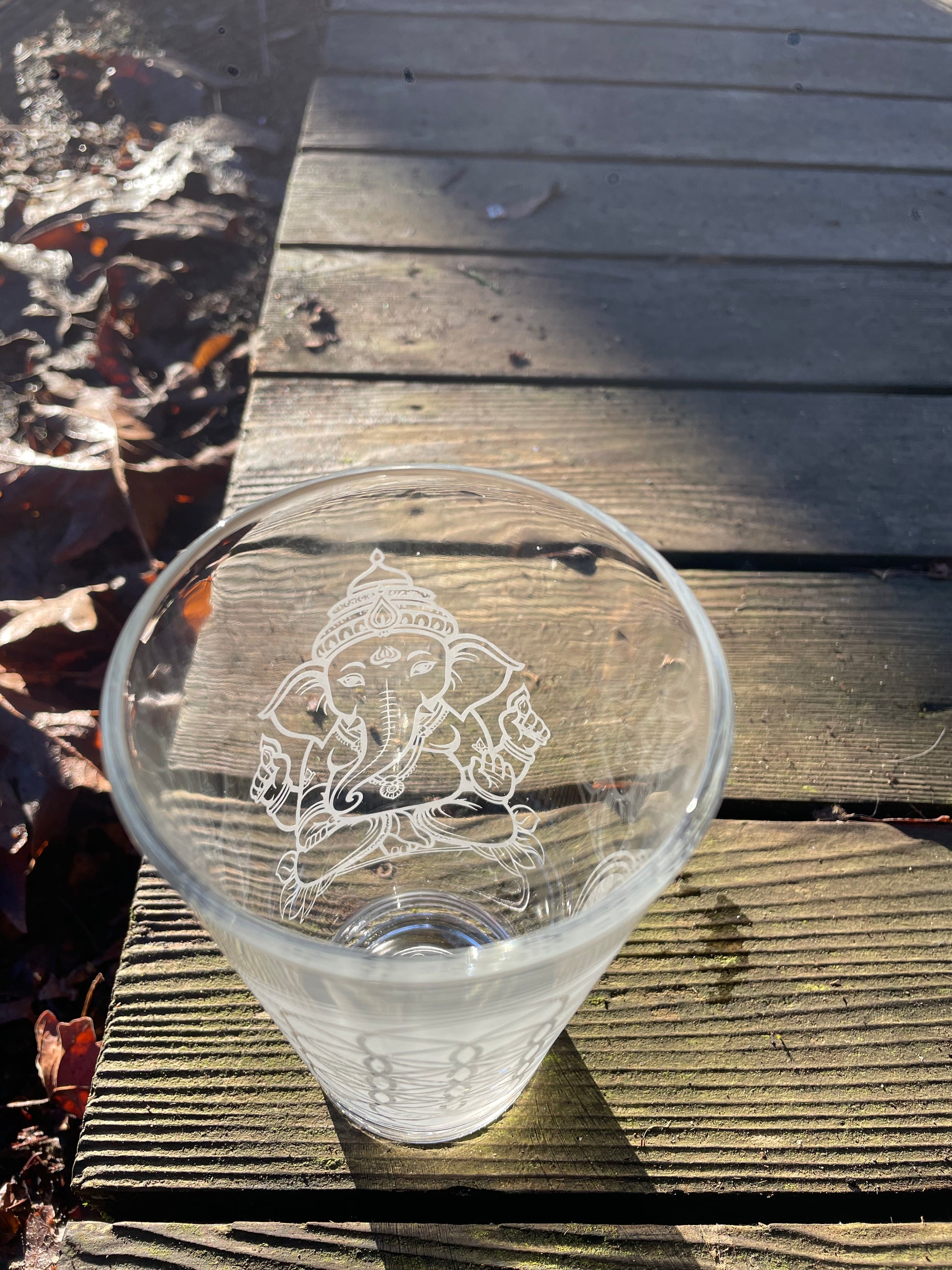 Flower of Life and Ganesha 480ml Etched Pint Glass | Sacred Geometry Drinkware